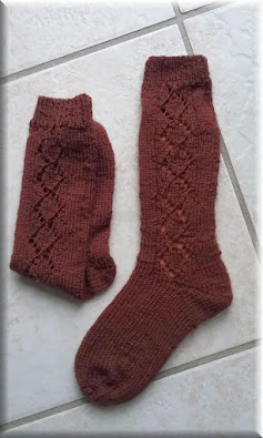Kniestrümpfe - in einem "nebligen" Braun: 25/26. Ein seitliches Lacemuster ist gewünscht.